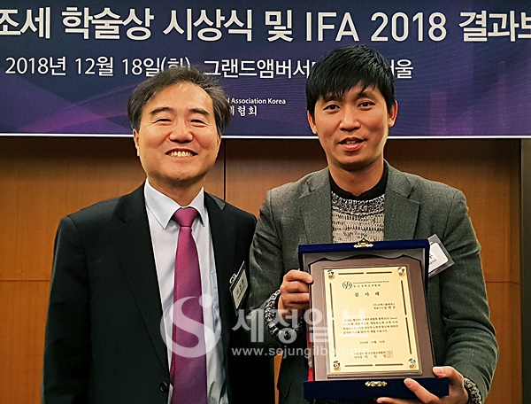 제 72차 IFA 세계 총회의 성공적인 개최에… 공로상 수상우리나라 국제조세의 발전에 기여를 해오고 있는 한국국제조세협회(이사장: 이진영)가 18일 오후 6시 그랜드앰버서더 호텔 서울에서 50여명이 참석한 가운데 ‘2018년 국제조세학술상 시상식 및 IFA 2018 결과보고회’를 개최했다. IFA총회는 80개국에서 참석하는 조세분야의 올림픽이라고 할 수 있으며, IFA총회를 성공적으로 개최하는데 큰 공로를 세운 (주)코멕스플랜에스(대표이사: 김택주)가 공로상을 수상했다. 공로상을 받은 김택주 (주)코멕스플랜에스 대표이사는 “공로상을 받아도 되는지 부담도 많이 되는데, 올해를 마무리하는 끝자락에서 국제조세협회와 함께 할 수 있어서 무엇보다 기쁘다. 진심으로 감사드린다”고 말했다.